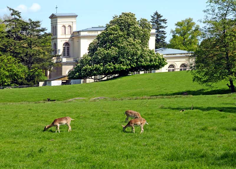 Einen Besuch wert ist auch der 75 ha große Schlosspark mit seinen seltenen Bäumen und dem Tierpark. Hier findet der Besucher auch die Orangerie (erbaut 1824, bis 1945 Gewächshaus, heute Ausstellungszentrum), den Marstall (1824 erbaut als Reit- und Pferdestall, nunmehr für kulturelle Zwecke genutzt) und den 1846 erbauten Kursaal (1891/92 als Kirche umgebaut).