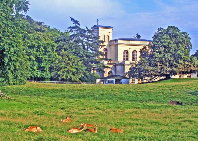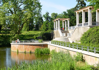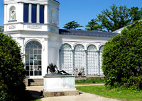 The palace garden with its rare trees and a small zoo, covering a total size of 75 hectars, is surely worth a visit. You can find here an orangery which was built in 1824 and used as a green house until 1945. Nowadays it serves as an exhibiton centre). The royal stables were built in 1824 as riding and horse stables and are now used for cultural events. Finally, the kursaal was built in 1846 and rebuilt into a church in 1891/92.