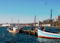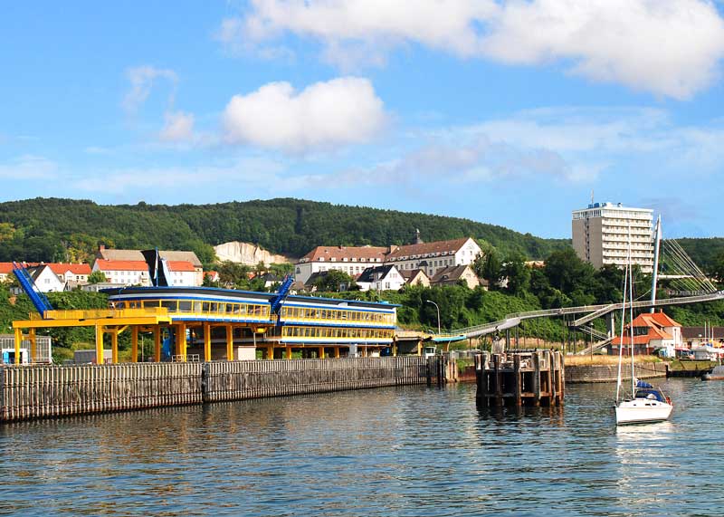 The number of inhabitants increased from 5000 in 1931 to 14374 in 1985. Sassnitz received its town charter in 1957. For political and economic reasons a completely new ferry port was built in 1982 at a place near Neumukran (nowadays ferry port Sassnitz). Four years later, the first ferry Sassnitz/Mukran - Klaipeda (Memel) landed there. Even if bathing is plays no longer a decisive role in Sassnitz, tourists from all over the world are still attracted to the town harbour and the nearby national park Jasmund with its marvellous beech groves, that is located nearby, as well as the impressive chalk cliffs, the lake Herthasee and the Koenigsstuhl.